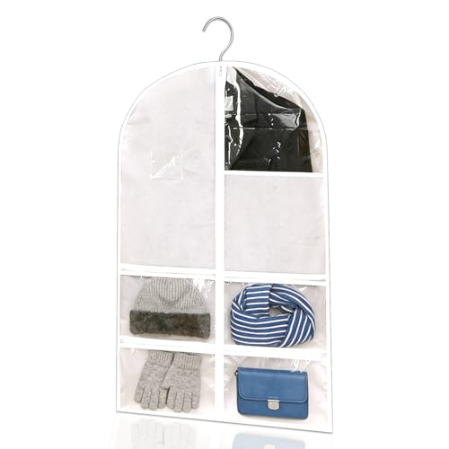 45'' Hanging Garment Bags for Closet Storage Sealed Completely Jackets Coats Suits Clothes Rack Cover for Wardrobe with Clear PVC Window and 3 Zippers Opening