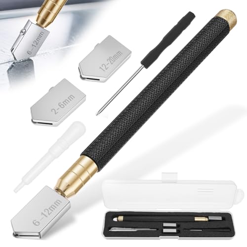 Glarks 6Pcs Glass Cutting Tool Kit, Pistol Grip Glass Cutter with 3 Replacement Head 2-6mm/6-12mm/12-20mm and Tungsten Scribe Engraving Pen with Oil Dropper Set for Glass Tiles Mirror Mosaic Cutting