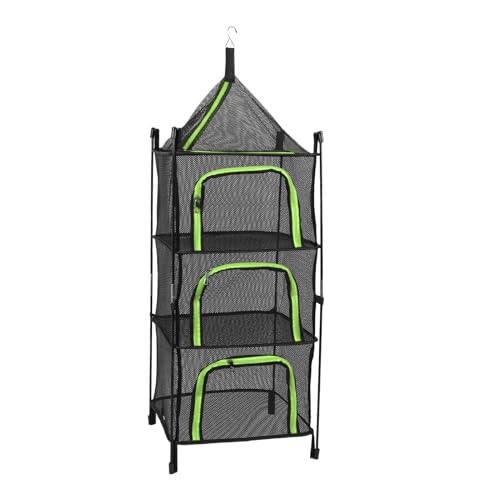 4 Layers Herb Drying Rack Hanging Mesh Net with Zipper Closure Foldable Mesh Drying Rack Multifunctional Drying Net Hanging Basket Dryer Net for Clothes Toys Vegetables Fruits Fish (Dark Green)