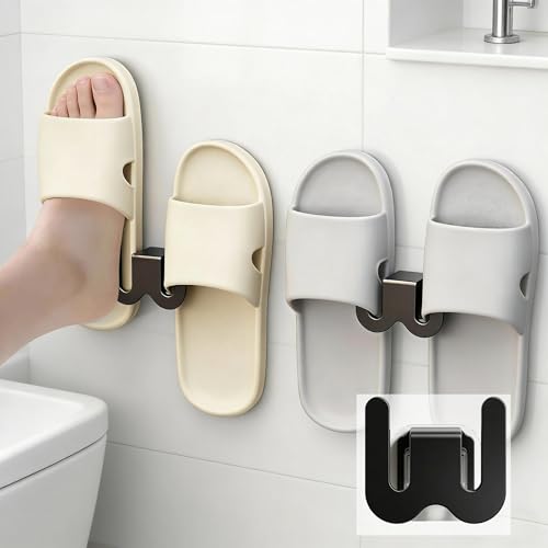 Self Adhesive Wall Mounted Shoe Rack, Space-Saving Slipper Holder Hook, Non-Drilling Hanging Shoe Organizer for Bathroom, Bedroom, Door, Entryway, 1 Pack(Black)