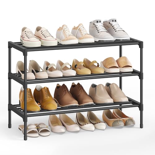 ENJOYBASICS Expandable Metal Shoe Racks for Closet, 3 Tier Adjustable Shoe Organizer Shelf, Black Free Standing Rack Storage for Entryway