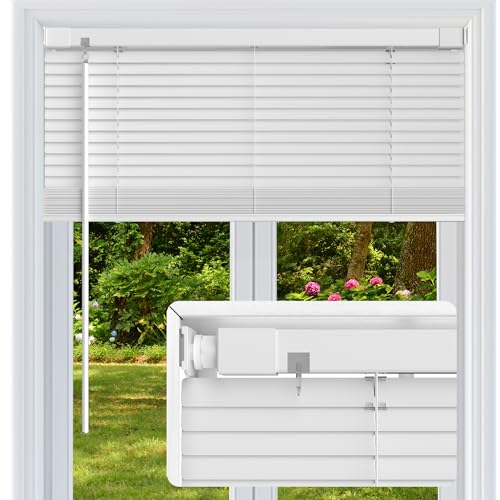 Window Blinds Cordless,35" White Cordless Light Filtering Window Blinds, Horizontal Vinyl Mini Blinds/Shades, Easy Install,1 Curtain + 2 Clips (White)