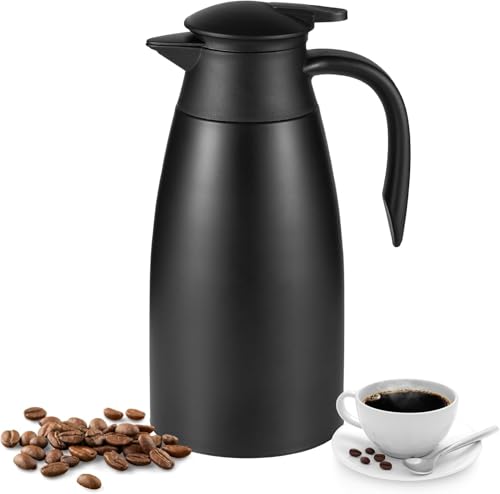 Thermal Coffee Carafe - 2L/70oz Double-Walled Vacuum Insulated Stainless Steel Coffee Carafe with Ergonomic Handle - Hot & Cold Retention for Coffee, Tea, Milk, Water