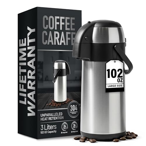 Coffee Carafe Insulated 102 OZ / 3L Stainless Steel Hot Beverage Dispenser, Airpot Coffee Dispenser with Pump, Thermal Coffee Carafe for Hot Liquids, Coffee Carafes for Keeping Hot Drink Dispenser