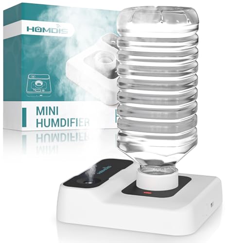 HOMDIS Travel Humidifier, Portable Small Humidifier for Plants, Bedroom, Office, Hotel or Car, 5000mAh Battery Operated Mini Cool Mist Humidifiers, Quiet 23dB, Auto-off, Night Light & BPA-Free, White