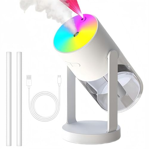 DSPET Portable Mini Humidifiers for Travel, USB Personal Desktop Humidifier for Bedroom Office Car with 20dB Ultra-Quiet Design, 45掳 Adjustable Angle, RGB Starry Sky Light, Auto Shut-Off, White