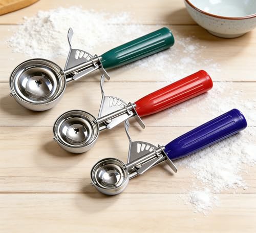 Ice Cream Scoop with Trigger,3 PCS Cookie Scoops, Ice Cream Scoop, Dishers Scoops, Cupcake Scoop for Portion Control, Scoop Cookie Dough, Cupcake Batter, Or Ice Cream(0.8 oz+1.4 oz+2.7 oz)