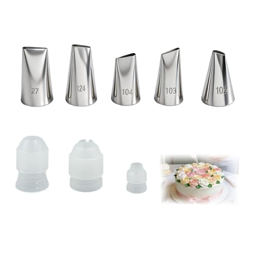 Russian Piping Tips Set, 8 Pieces Cake Decorating Tips Baking Supplies, 7 Flower Frosting Nozzles Icing Tips and 1 Three-hole Couplers for Cake Decorating, Cupcake, Cookie, Baking