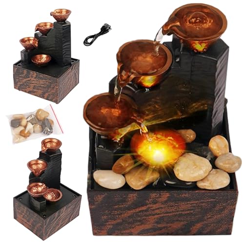 Tabletop Fountain with Light Battery/USB Operated Mini Indoor Water Fountain Feature Zen Decor Sound Relaxation Ornament for Table Office Home Bedroom(style2)