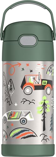 THERMOS FUNTAINER 16 Ounce Stainless Steel Vacuum Insulated Bottle with Spout and Locking Lid, Neon Lime