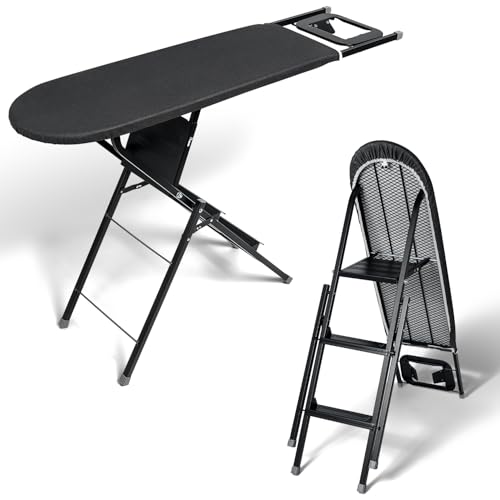Duwee 18" 脳53" Ironing Board with Retractable Iron Rest,Extra Wide Ironing Board Full Size, Heat Resistant Cover with Thicken Padding,Adjustable Height,Heavy Sturdy Legs and Foldable,Black