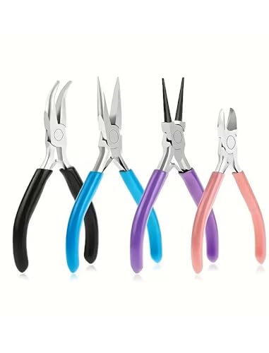 Jewelry Pliers, 4pcs Jewelry Making Pliers Tools with Needle Nose/Chain Nose, Round Nose and Wire Cutter for Repair, Wire Wrapping
