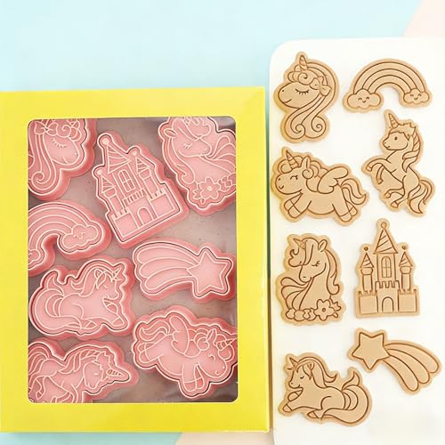 Unicorn Cookie Mold 8-Piece Set, Rainbow Meteor Castle 3D Fondant Cutter, Cartoon Cute Baking Tools for Kids, DIY Sugar Cookie Decorating Kit