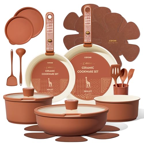 NutriChef 75-Piece Ceramic Nonstick Cookware & Bakeware Set 鈥 Pots & Pans Set with Bakeware, Kitchen Utensils, Knife Set & Accessories, Cream & Brown