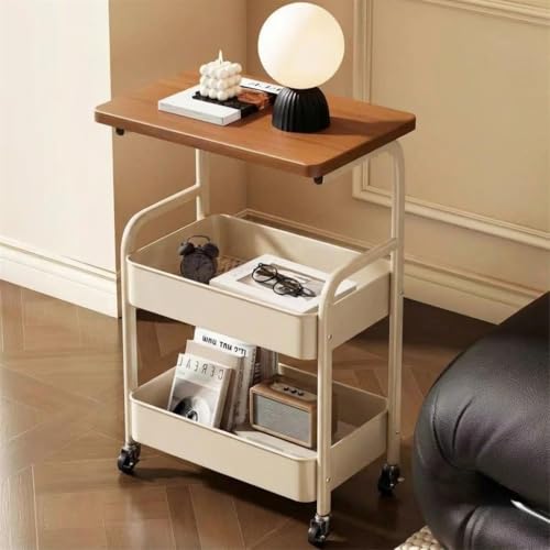Natwind 4-Tier Metal Rolling Utility Cart,Large Capacity Storage Organizer Cart with Handle and 6 Hooks, Mobile Storage Trolley on Wheels for Kitchen,Bathroom,Living Room,Office,White