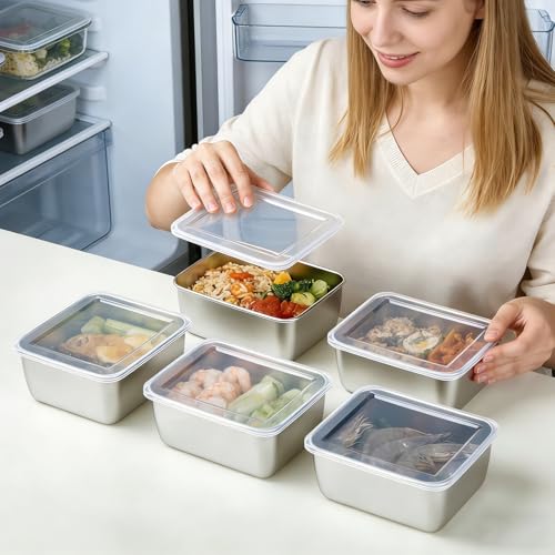 Stainless Steel Food Storage Containers Set, 3 Pack Freezer & Dishwasher Safe Stackable Storage Boxes with Lids, Oven-Safe Trays & Side Dish Plates Ideal for Freezing, Meal Prep & Kitchen Organization