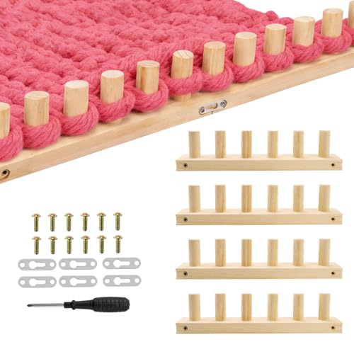 4Pcs Chunky Knitting Blanket Loom with 20 Stitch Markers,47"/120cm Adjustable Frame Wooden Blanket Loom with Screwdriver & Assembly Weaving Tools,Wooden Weaving Loom for Beginners Craft Enthusiasts