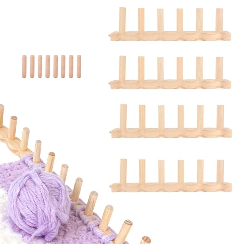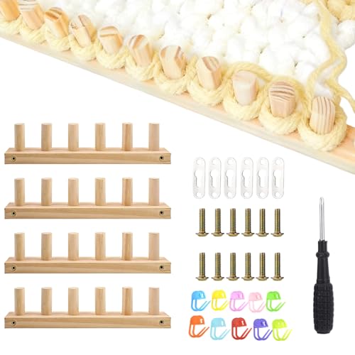 Penitue 4pcs Chunky Knitting Blanket Loom, 47.24in/120cm Wooden Wavy Edge Chunky Blanket Loom with 8 Wooden Dowel Pin for Beginners Knitting Blankets Shawls