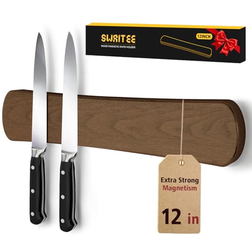 Resafy Large Magnetic Knife Holder,Acacia Wooden Magnetic Knife Block 12 X 10 Inches,Rack Magnetic Universal Stands with Strong Enhanced Magnets Strip Kitchen Storage Cutlery Organizer Without Knifves