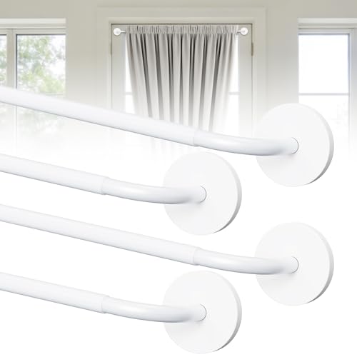 Rodzwin 2 Pack Magnetic Curtain Rods for Metal Door, Adjustable 18 to 30 Inch Curtain Rod, 3/8" Diameter Magnet Rods for French Doors Window Cafe(White, 2Pack)