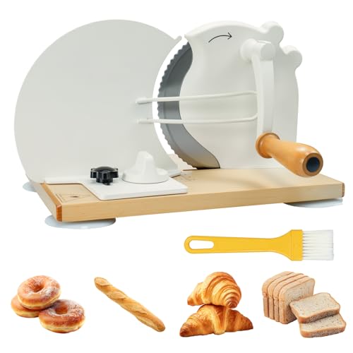 SOWKIPE Manual Bread Slicer with Hand Crank, Classic Home Bread Slicer for Homemade Sourdough, Rotary Slicer with Adjustable Thickness, Premium Stainless Steel & Powerful Suction Cups (White)