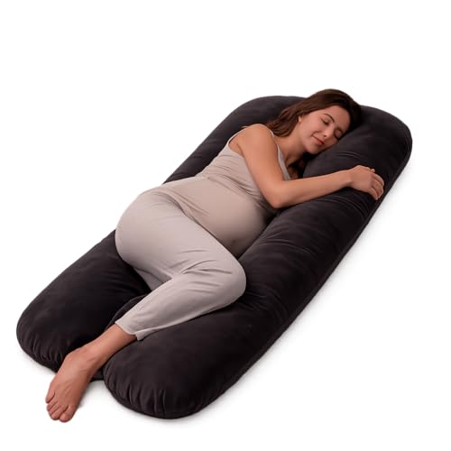 AS AWESLING Pregnancy Pillow, U Shaped Full Body Pillow, Nursing, Support and Maternity Pillow for Pregnant Women with Removable Velvet Cover (Grey)