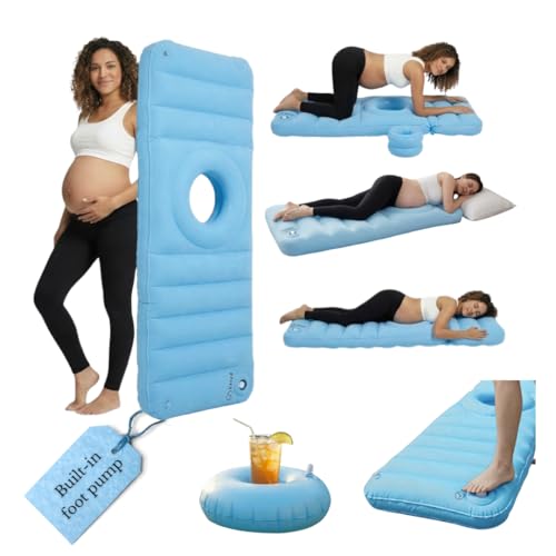 Pregnancy Pillow Mattress with Hole for Sleeping, Inflatable Maternity & Body Pillows for Pregnant Women, Comfortable Tummy Nest Pregnancy Mattress for Stomach Sleepers, Pregnancy Pool Float (Pink)