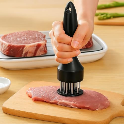 KITCHENDAO Detachable Meat Tenderizer Needle Tool with Safety Lock, Detachable for Easy Cleaning, Dishwasher Safe, 48 Upgraded Stainless Steel Needles, for Tendering Steak Pork Belly Skin Chicken