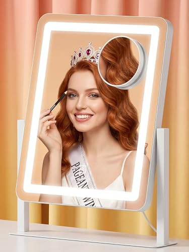 Auxmir 5000mAh Rechargeable Wall Mounted Makeup Mirror, 1X/30X Double-Sided Magnifying Mirror with Light, 9" Lighted Vanity Mirror with 3 Color Modes, Touch Dimmable, 360掳 Swivel Extended Arm, Chrome