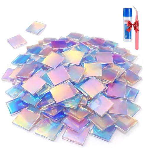 Youway Style Iridescent Glass Mosaic Tiles for Crafts Bulk,200g Broken Mosaic Glass Pieces for Garden Mosaic Crafts,DIY Mosaic Art Decor,Holiday & Christmas Mosaic Art