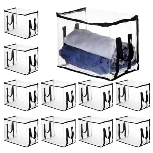 Fiabgum 94L Large Storage Bag with Lid, Pack of 4 Transparent Moving Boxes, Clothing Storage, Moving Bags, Storage Bags with Handle for Storing and Organising Clothes