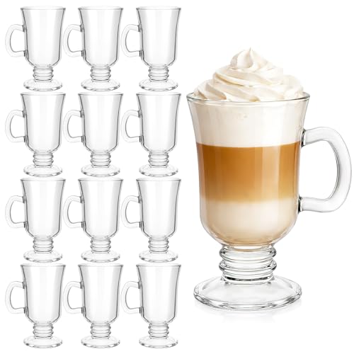 AVLA 6 Pack Glass Coffee Mugs, 16 OZ Unique Vertical Stripes Coffee Cup, Clear Large Tea Glasses with Handles, Vintage Transparent Glassware for Hot/Cold Beverages, Cappuccino, Latte, Espresso, Juice