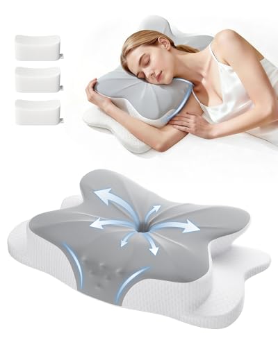 Uvellgift Cervical Neck Pillow, 2 Heights Neck Support Pillow for Neck Pain & Snoring Relief, Ergonomic Pillow for Side and Back Sleepers, Sleep Apnea Pillow with Breathable Ice Silk Cover (Grey)
