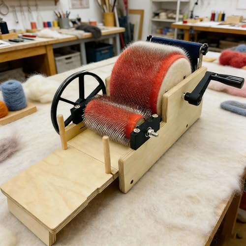 Wool Carding Machine, Manual Wool Felt Drum Carder, Fast Color Mixing, Combing, Spinnings, Wool Combing Machine, Wool Blending Wheel for DIY Craft Make Felt Animals (24cm)