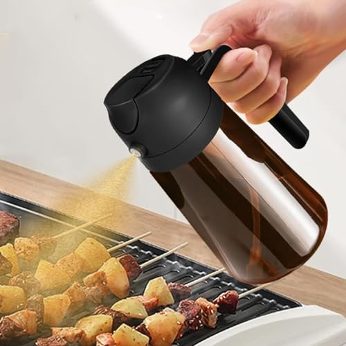 Oil Spray Bottle, 470 ml/16 oz Oil Spray and Oil Container, Strong Fogging Spray Glass Bottle (Black) 2 in 1 Oil Spray