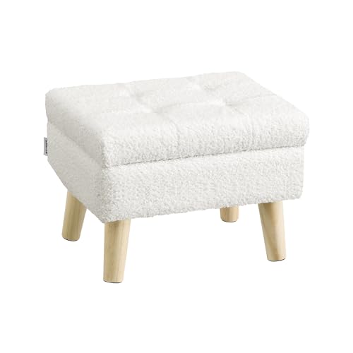 SONGMICS Storage Ottoman, Foot Stool, Ottoman with Padded Seat, Foot Rest with Wood Legs, Small Table, for Hallway, Living Room, 30 x 40 x 30 cm, Teddy Fleece, Cream White ULOM518WD01