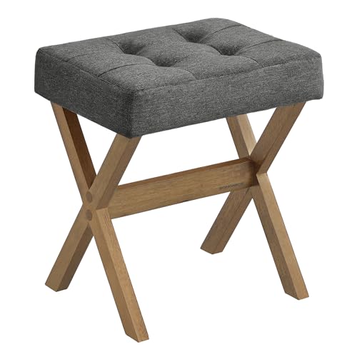 SONGMICS Foot Stool with Legs, Small Footstool Ottoman, Linen-Look Fabric Seat with Thick Cushion, for Living Room, Bedroom, Entryway, 330 lb Weight Capacity, Dark Gray ULOM502G01