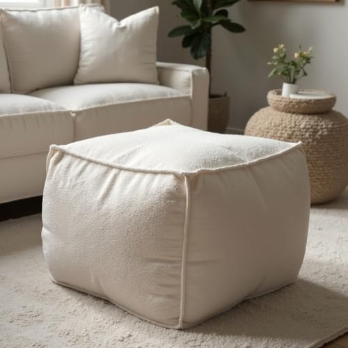 Aykah Teddy Ottoman, Boucl茅-Inspired Fabric, Modern Cube Design, Ottoman Foot Rest Stool, Fluffy Floor Pouf for Living Room, Bedroom
