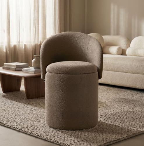 Get Set Style Modern Round Ottoman with Soft Padded Seat, Storage Vanity Stool for Makeup, Upholstered Footrest Stool Ottoman Foot Stool for Living Room, Bedroom