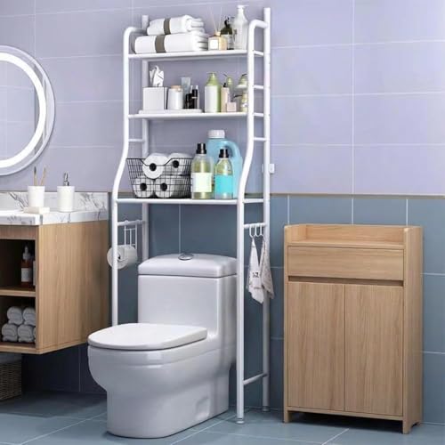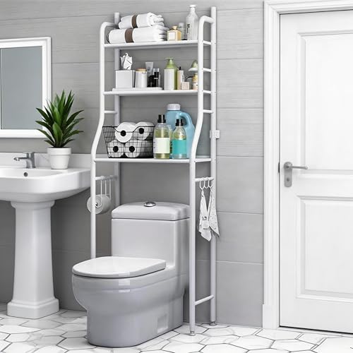 Flrrtenv 4-Tier Over The Toilet Storage Rack, Over Toilet Bathroom Organizers, Saving Bathroom Organizer with Adjustable Shelves, Sturdy Metal Frame Toilet Shelf Cabinet for Bathroom Storage, White