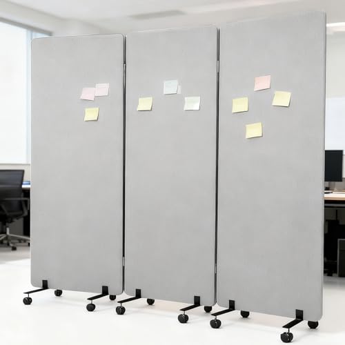 VIVO Freestanding 72 x 66 inch Privacy Panel, Cubicle Divider, Acoustic Wall Partition, x3 24 inch Panels, Gray, PP-3-T072G