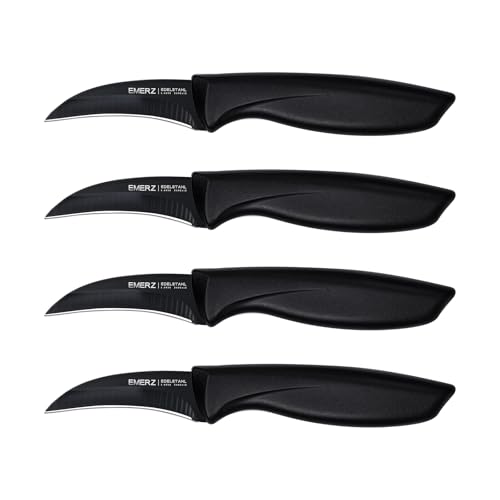 EMERZ Bird Beak Curved Paring Knife Set, Premium Stainless Steel,Peeling Knives 2.5 Inches- Black, Ultra Sharp Forged Blade, Sturdy Plastic Handles,Suitable for Peeling and Carving, Black for 4-piece