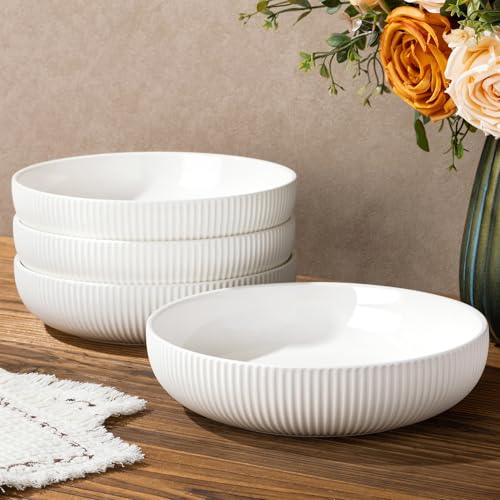 jinsongdafa Soup Bowl, Soup Plate with Rim 12 oz, Pasta Bowl Set of 4, White Shallow Bowl Plate, Ceramic Wide Rimmed Soup Bowl, Best choice for high-end restaurants, hotels, and foodies, 8.86 Inch