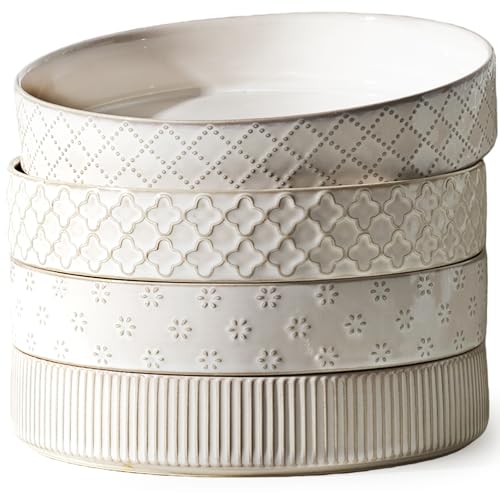 MALACASA Large Pasta Bowls Set of 4, 48 OZ Salad Bowls Serving Bowls for Dinner, Ceramic Soup Bowls Pasta Plates for Serving, Stackable, Microwave & Dishwasher Safe, Multicolor, Series TARA