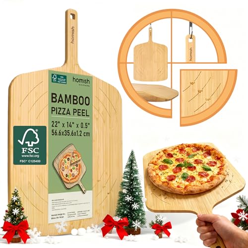 Menesia 12 Inch Premium Bamboo Pizza Peel with Handle,Wooden Pizza Paddle,Cutting Board for Fruit,Vegetables,Cheese,Bread(Circle)