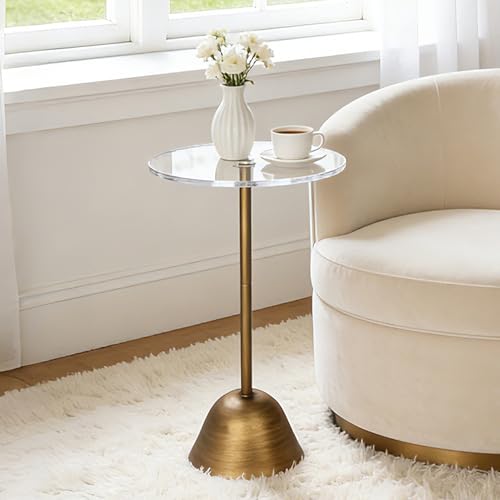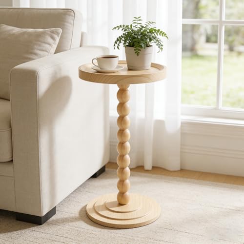 PHWRECZ Pedestal Side Table Drink Table Acacia Drink Table with Weighted Base Small Round Side Table for Small Spaces with Phone Holder for Living Room RVs Home Office