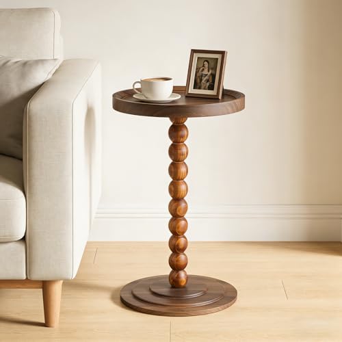 EVERBBKING Solid Wood Pedestal Side Table Black Color, Drink Pedestal, End Corner Table Small Round Martini Table