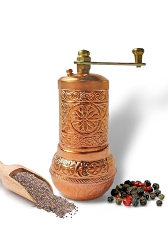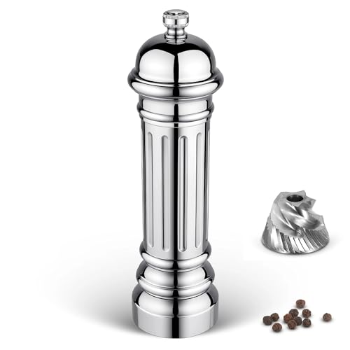 Decorative Black Pepper Grinder, Refillable Turkish Spice Mill with Adjustable Coarseness, Manual Pepper Mill with Handle, Spice Grinder Metal with Hand Crank, Dark Silver