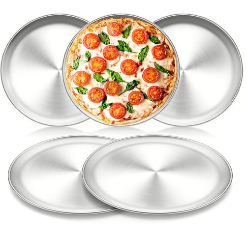 tchrules 12 Inch Pizza Pan Set of 8, Stainless Steel Pizza Tray, Round Non-Stick Coating Pizza Plate for Oven Kitchen Baking Home Restaurant, Dishwasher Safe 锛圫ilver锛