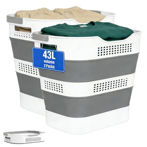 HOUSE AGAIN Upgraded Pop-up Laundry Hamper 2 Pack, Collapsible Laundry Basket with Durable Handles Solid Bottom High Steel Frame, Portable Foldable Dirty Clothes for Dorm, Laundry room Travel, Grey